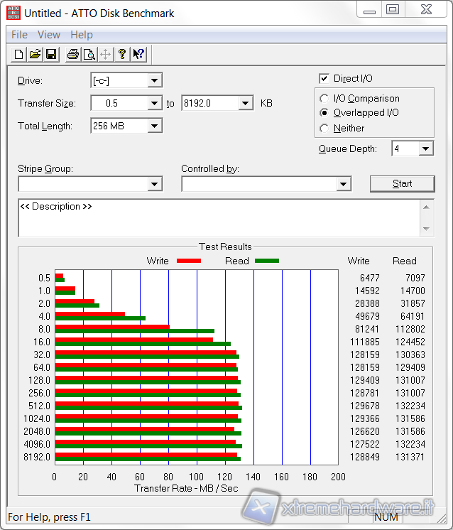 Atto è un benchmark gratuito che esegue dei semplici test in lettura e in scrittura in modalità sequenziale adoperando una Queue Depth (file in coda) di 4.